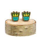 Leseni uhani kaktus v rumeni in turkizni barvi.