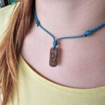 Lesena ogrlica plata je izdelana iz slovenske češplje in povezana z zelo mehkim prusikom.