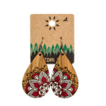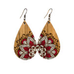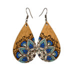 Leseni uhani so izdelani iz slovenskega oreha in ročno barvani z akrilnimi barvami.